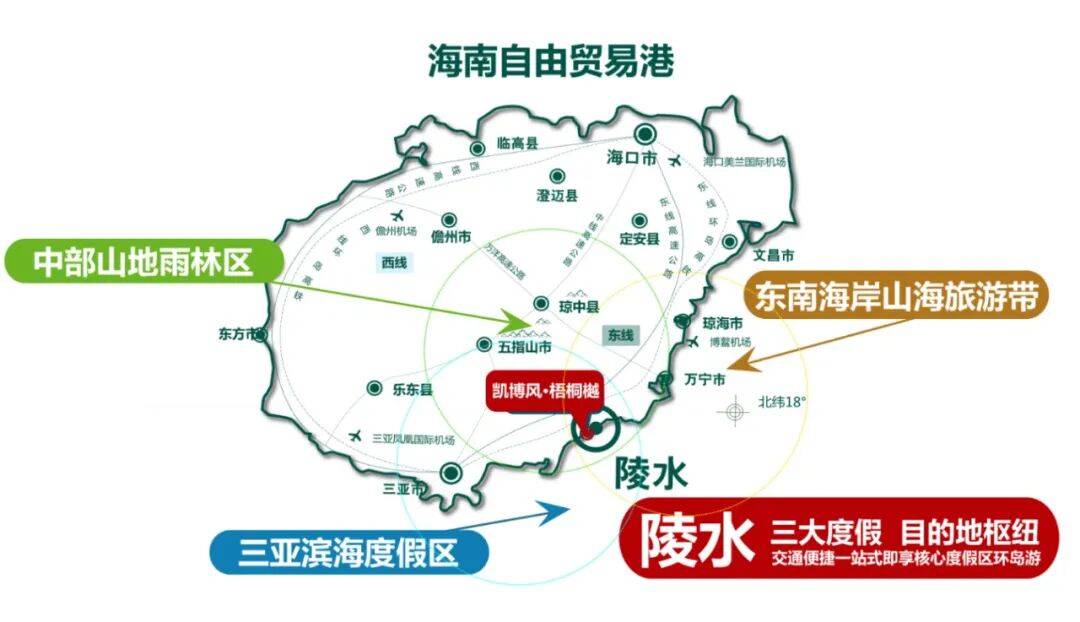 北纬18°神奇纬度,陵水118.57km的黄金海岸线,近享清水湾,香水湾,海棠湾三大度假湾区旅游资源。